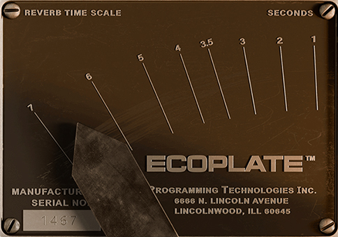 Ecoplate design consists of a special steel alloy plate whose vibrations create a very smooth natural decay, captured by a pair of pickups that deliver a rich stereo reverb.